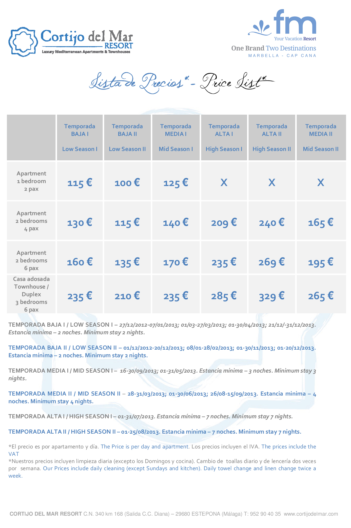 Horario de entrada y salida: Entradas entre: 17:00 – 21:00 horas Salidas: A las 12:00 horas